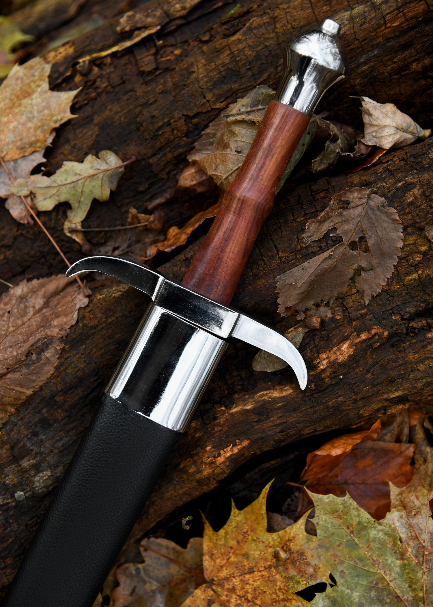 La daga viene fornita con una custodia in pelle nera, che non solo esalta la sua bellezza, ma ne assicura anche la protezione. Con dettagli metallici che completano la lama, questa custodia è sia funzionale che estetica, ideale per chi cerca un accessorio che parli della propria passione per la storia.