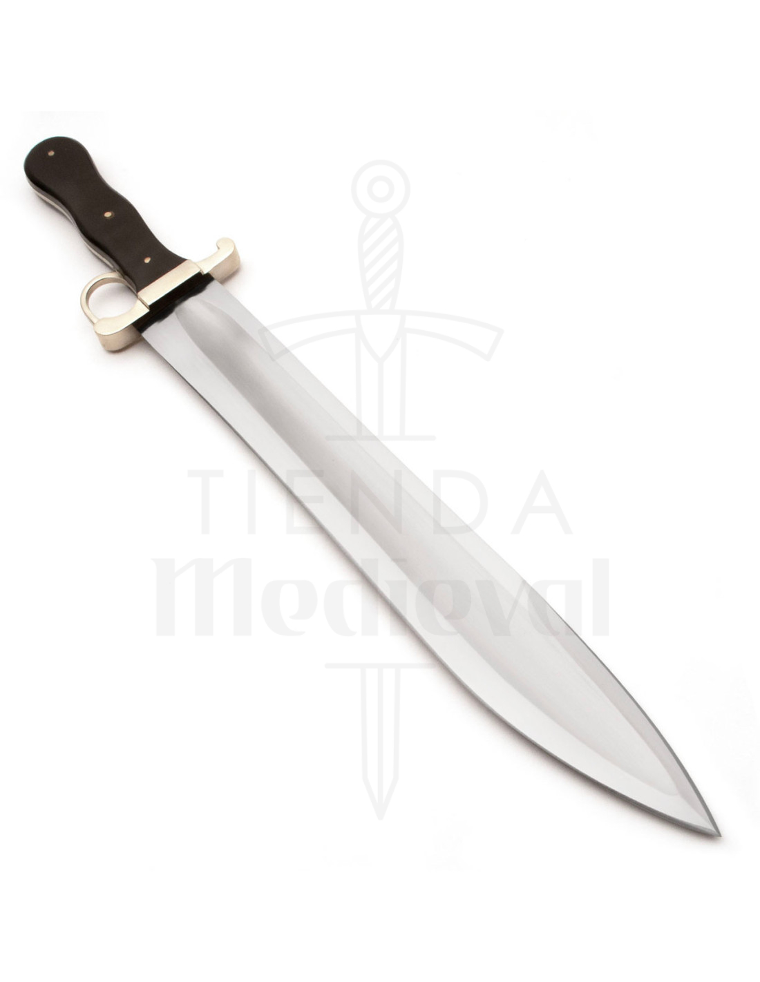 Il manico scuro, con una curva ergonomica sottile, migliora la presa e riduce la fatica, permettendo una maneggevolezza comoda sia nelle dimostrazioni che nelle revisioni di collezione, e la guardia con barra orizzontale e anello offre sicurezza e controllo aggiuntivo in ogni movimento.