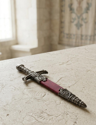 Una delle caratteristiche più importanti di questo pugnale è la sua incisione a tutta lunghezza lungo la lama, che gli conferisce un aspetto minaccioso e autentico. Inoltre, è attaccato a una croce rotonda, aggiungendo un tocco di eleganza e raffinatezza.