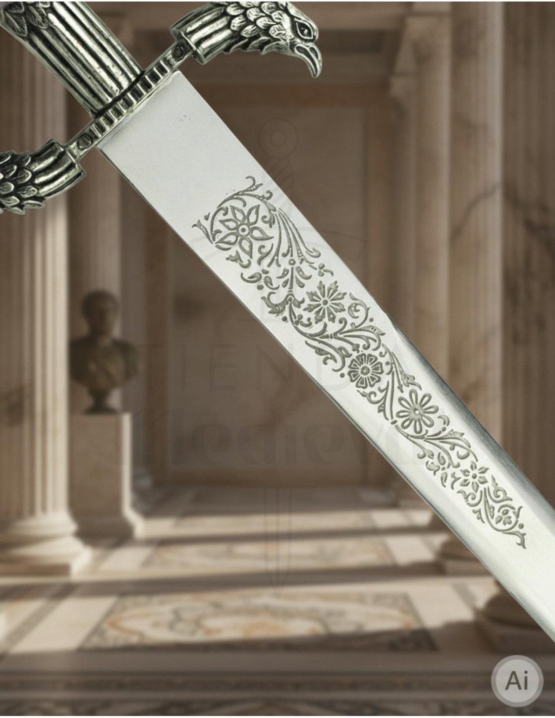 Stai cercando un pugnale unico e di alta qualità? Allora non cercare oltre, perché abbiamo il pugnale delle tre aquile che stai cercando. Questo pugnale ha una lama in acciaio inossidabile incisa e finiture dell'elsa in argento antico, che gli conferiscono un aspetto elegante e sofisticato.