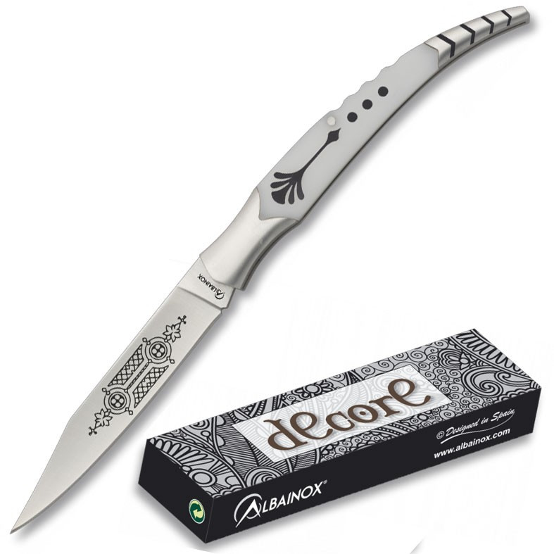 Coltello da collezione Albainox con rivestimento in ottone e lama di cervo (21,5 cm).