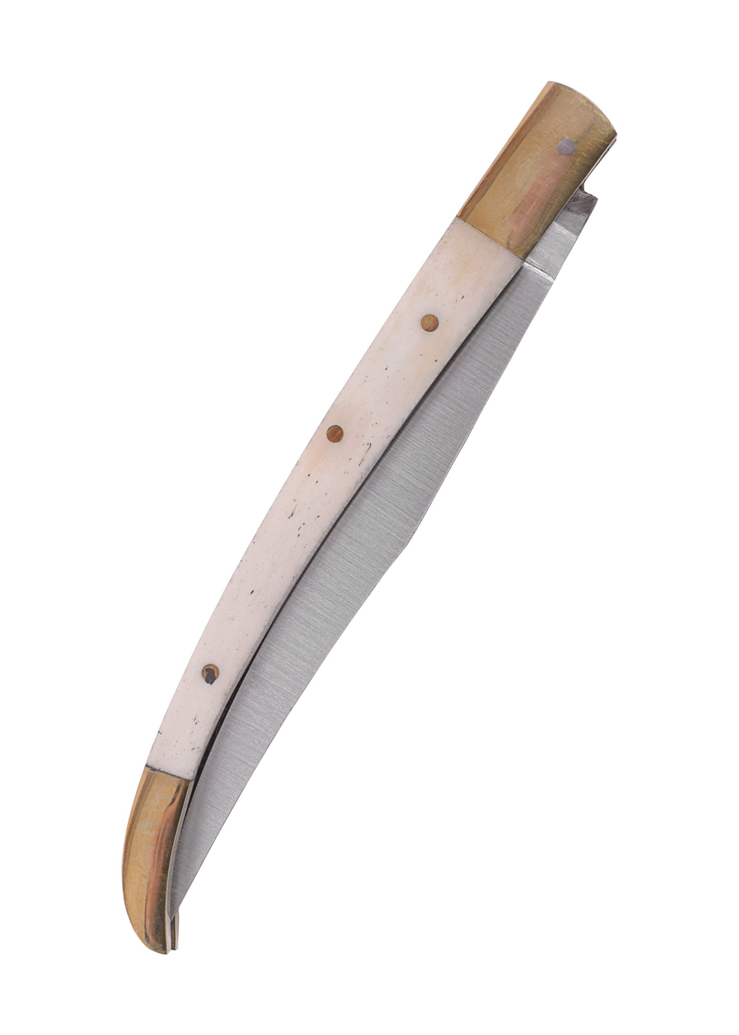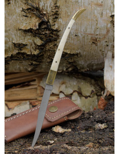 - Manico in osso: il manico in osso non è solo durevole e robusto, ma aggiunge anche un tocco di autenticità ed eleganza al design del coltello. Le scaglie ossee sono rivettate al manico, garantendo una presa sicura e confortevole durante l'uso.