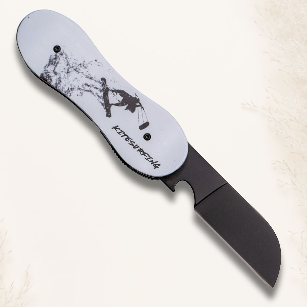 Immagina di avere tra le mani uno strumento che non solo è funzionale, ma riflette anche la tua passione per il kitesurfing. Il coltello che ti presentiamo è molto più di un semplice coltello; è un compagno di avventure progettato per coloro che vivono l'emozione dello sport acquatico.