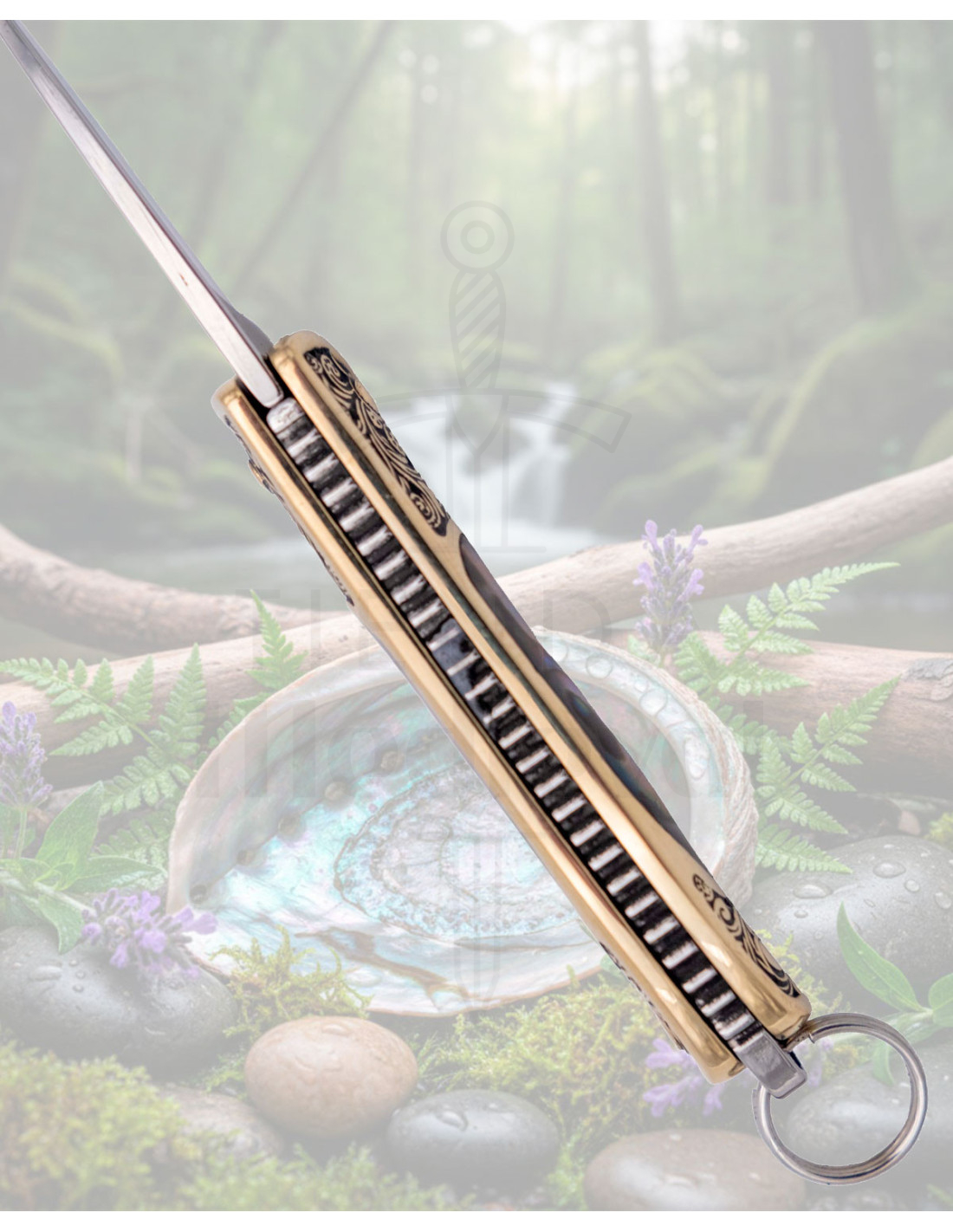 Perfetto per chi apprezza finiture lucide, inserti in madreperla e un design compatto che non rinuncia alla personalità, questo coltello è un'opzione distintiva per un regalo memorabile o un acquisto consapevole.
