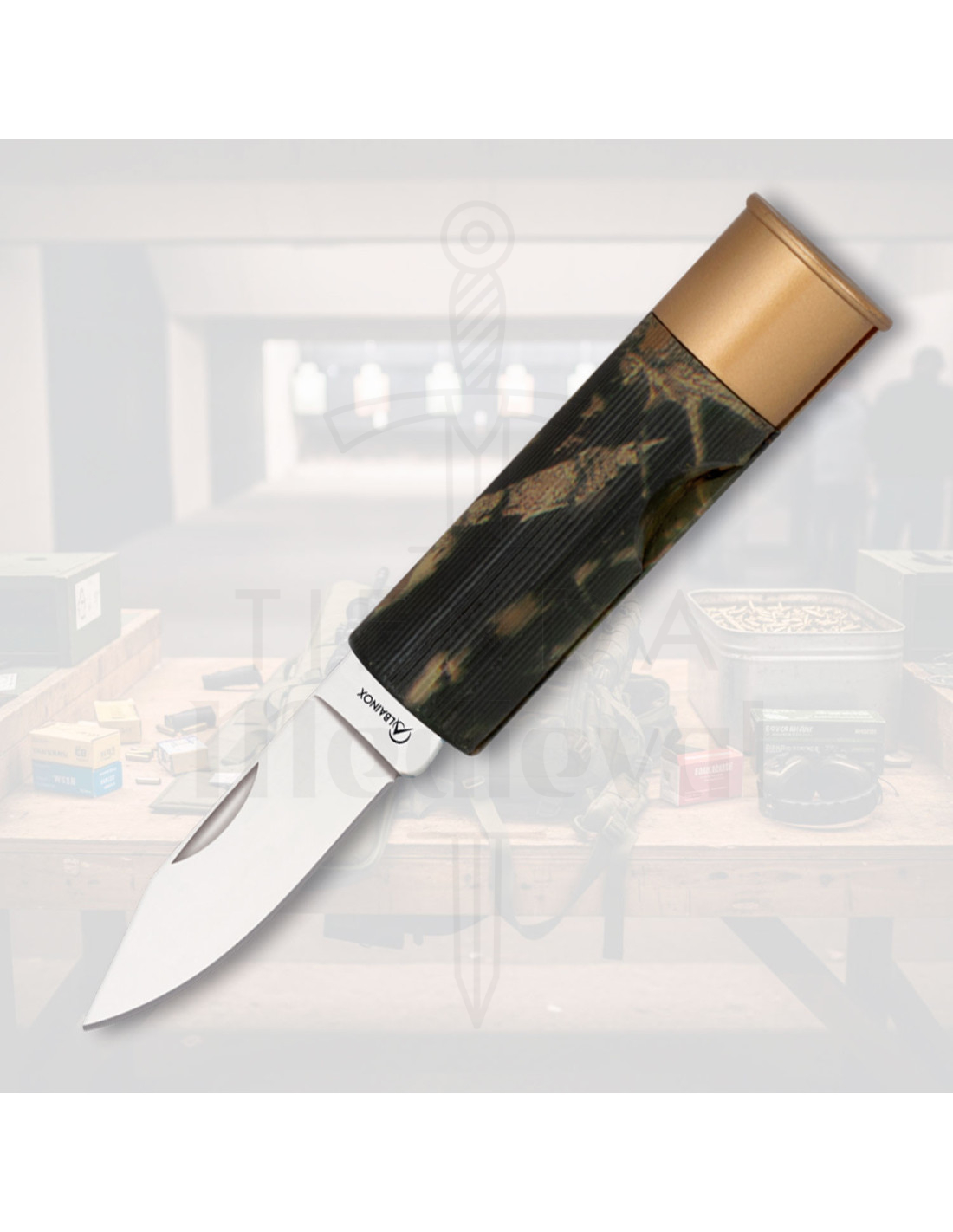 Il manico in ABS con motivo mimetico non solo conferisce carattere, ma è anche progettato per una presa comoda e stabile: i suoi intagli e la forma cilindrica favoriscono la maneggevolezza anche in situazioni di uso continuo, e la finitura metallica in tono dorato aggiunge un tocco di distinzione senza sacrificare funzionalità.