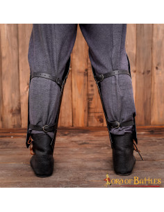 Con un'altezza totale di circa 48 cm, questi schinieri copriranno efficacemente i tuoi stinchi e forniranno una protezione ottimale durante i tuoi scontri epici. Inoltre, sono tenuti saldamente in posizione dai due robusti cinturini in pelle sul retro, assicurando che non scivolino o si spostino durante l'azione.