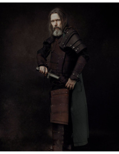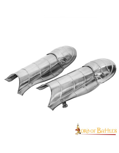 Set di bracciali e schinieri medievali in acciaio modello Adam, finitura annerita