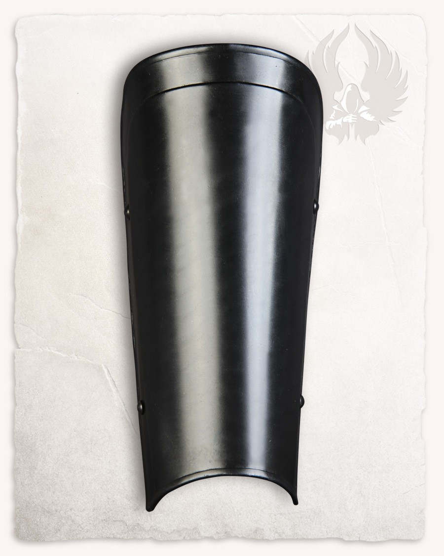 Con uno spessore di 1 mm, questi schinieri sono realizzati in acciaio di alta qualità che garantisce protezione e durata. La loro elegante finitura scura li distingue dalla massa e aggiunge un tocco di mistero e potere a qualsiasi set di armature.