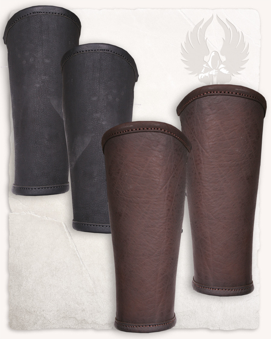 Gambali da guerriero medievale in vera pelle marrone