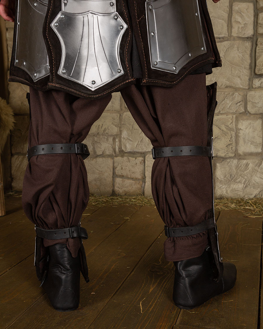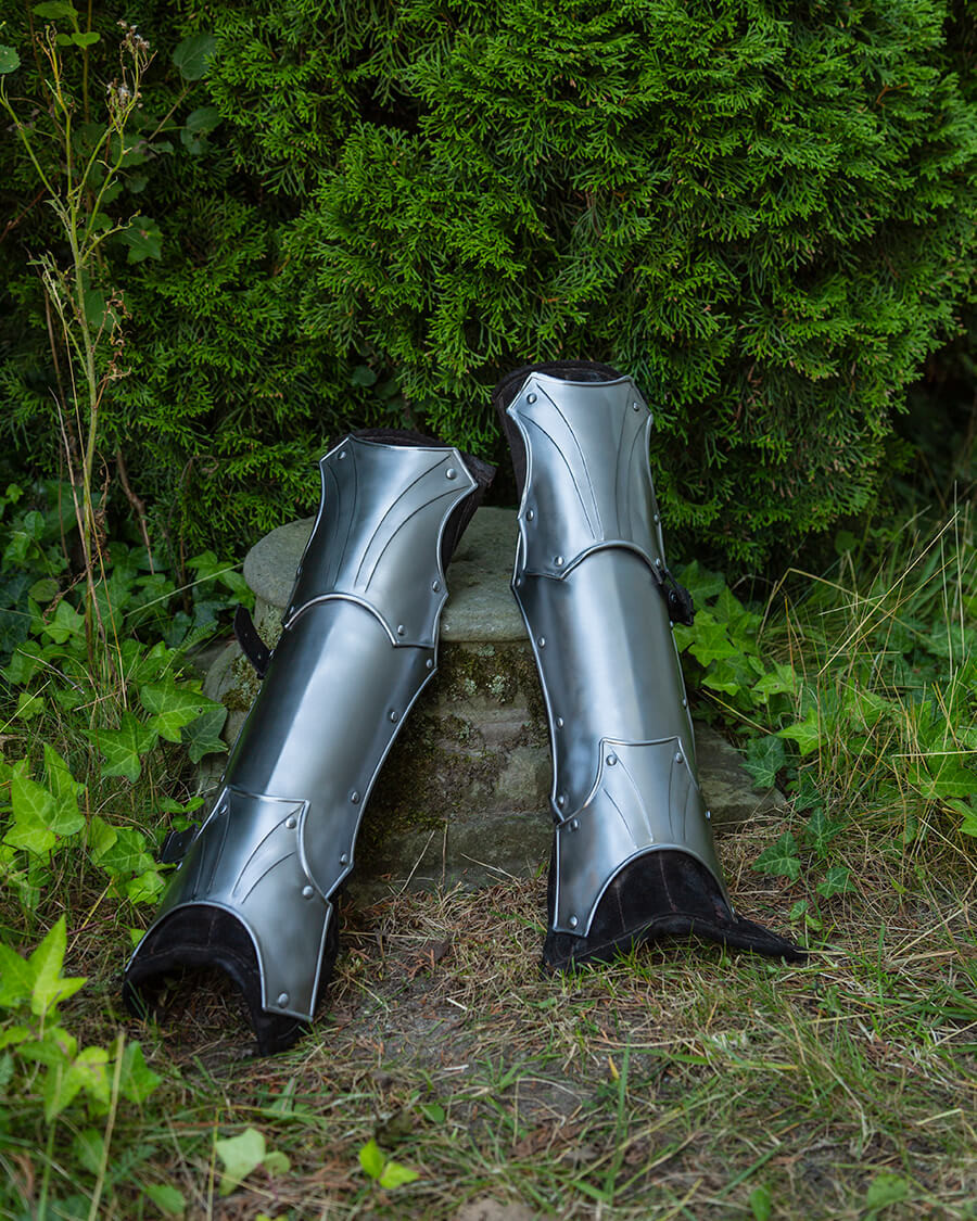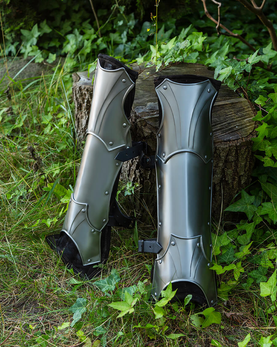 - Design elegante e curvo: le linee curve e l'ampio bordino dei gambali conferiscono loro un aspetto elegante e stilizzato, fornendo al contempo la massima protezione. Questo design unico li rende adatti a personaggi con origini "norrene", nonché avventurieri, cavalieri, soldati e altri guerrieri.