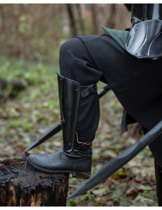 Immergiti nell'autenticità medievale con il bracciale modello Katharina e il set di schinieri in finitura scura! Questo set di armature, con il suo stile classico e i caratteristici dettagli curvi, è la scelta perfetta per chi cerca stile e sicurezza nei propri abiti medievali. Ecco tutti i dettagli che rendono il Set Katharina un gioiello per ogni appassionato d'epoca: