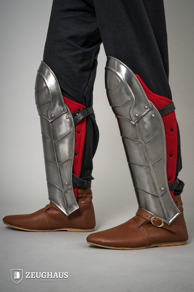 Greaves medievali modello Markward, finitura annerita