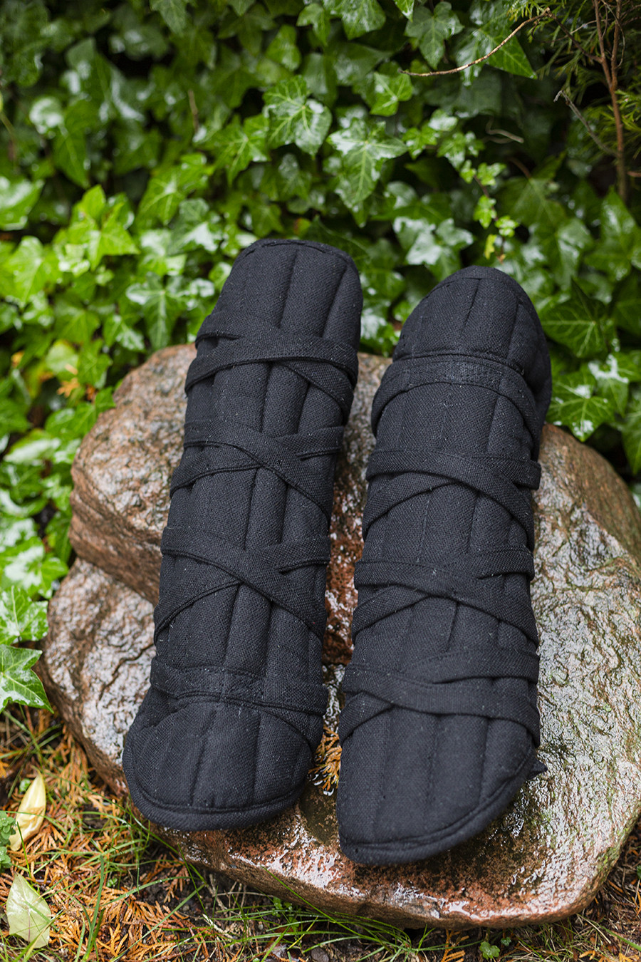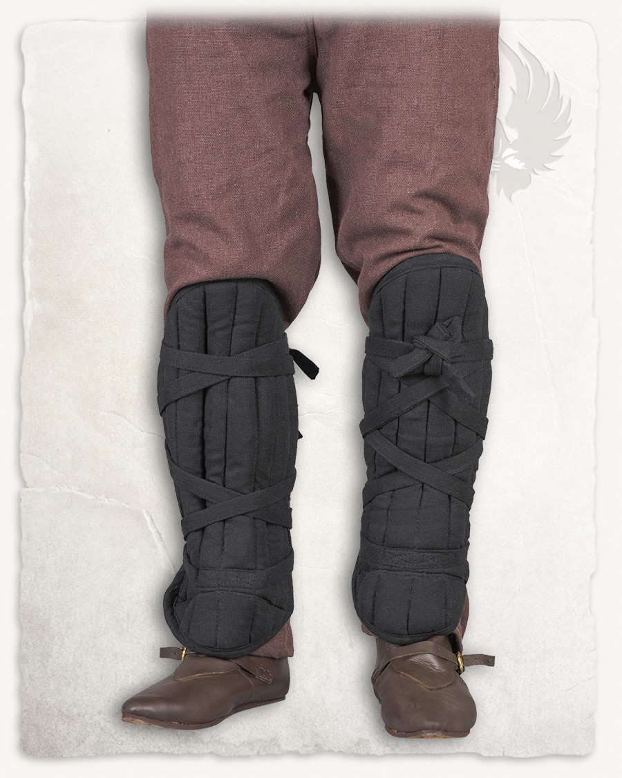 Immagina di avere la libertà di muoverti con totale fiducia, evitando i lividi e le abrasioni che spesso accompagnano l'uso dell'armatura. Grazie al suo ingegnoso sistema di chiusura, che si adatta attorno alla tibia, le grebas 'Farald' non sono solo funzionali, ma presentano anche un attraente motivo incrociato nella parte anteriore, aggiungendo un tocco estetico al tuo abbigliamento medievale.