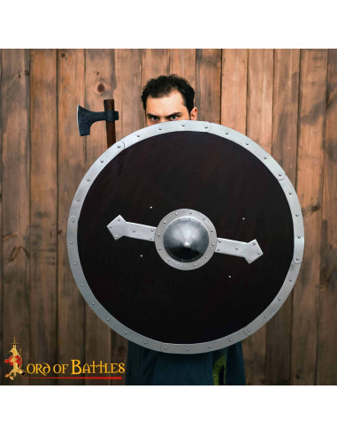 Scudo funzionale destinato ai combattimenti di lotta medievale. La fabbricazione e i materiali sono basati sugli scudi dei secoli XII-XIII.