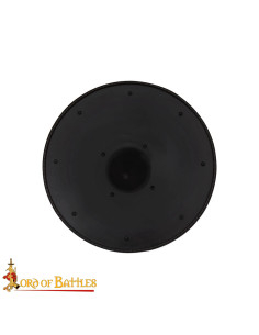 Forgiato a mano in acciaio, questo Scudo Vichingo offre una sensazione autentica e una risposta solida all'impatto, senza rinunciare alla manovrabilità necessaria per movimenti precisi. La sua finitura naturale e la superficie liscia in colore nero con rivetti a vista trasmettono quell'estetica guerriera che cerchi, mentre il bordo texturizzato funge da ammortizzatore contro gli urti, proteggendo l'integrità dello scudo e di chi lo maneggia. L'impatto centrale a forma di protuberanza non solo definisce il suo aspetto classico, ma protegge anche la mano e permette posizioni di difesa più sicure.