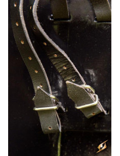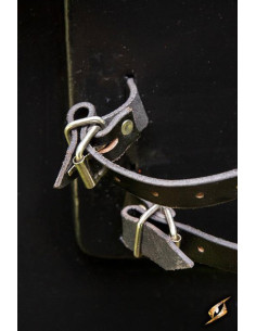 Indossa lo scudo incrociato con la mano sinistra o destra con l'uso dei suoi versatili tre cinturini in pelle sul retro, fissati con schiuma EVA dura per una presa affidabile e solida fatta per durare. Confida che questo scudo in lattice resisterà al continuo abuso di un LARP con una regolare manutenzione del lattice.