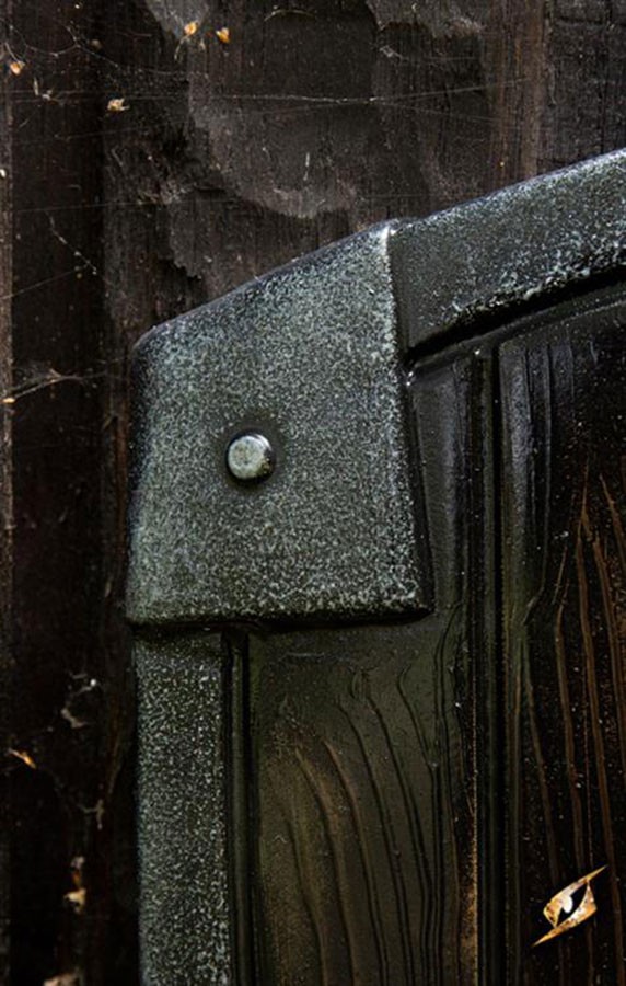 Uno dei principali vantaggi di questo scudo è il suo design curato nei dettagli. Dipinto con una patina strutturata in legno ricoperta da una striscia bianco-nera, finiture metalliche e araldica rossa, questo scudo non è solo visivamente sbalorditivo, ma è anche progettato per resistere alla prova del tempo e all'uso intenso.