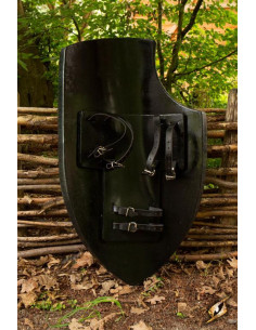 Anche il comfort è una priorità con questo scudo. È dotato di tre cinturini in pelle sul retro, progettati appositamente per i mancini, che garantiscono una presa affidabile e solida durante il combattimento. Queste cinghie sono fissate tramite schiuma EVA dura, che fornisce una maggiore stabilità e impedisce allo scudo di scivolare o spostarsi.