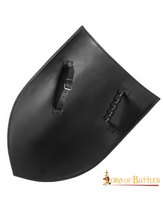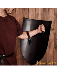 Questo scudo è realizzato a mano in acciaio dolce calibro 18 per impieghi gravosi che ne garantisce la durata e la resistenza. Inoltre, è dotato di un manico in metallo rinforzato con rivestimento in legno, che offre una migliore presa e facilita la presa.