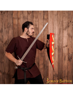 Lo scudo decorativo Richard the Lionheart è un pezzo unico ed esclusivo di artigianato del marchio Lord of Battles. Con dimensioni di 71 cm di lunghezza e 51 cm di larghezza, questo scudo diventerà il centro dell'attenzione in ogni stanza.