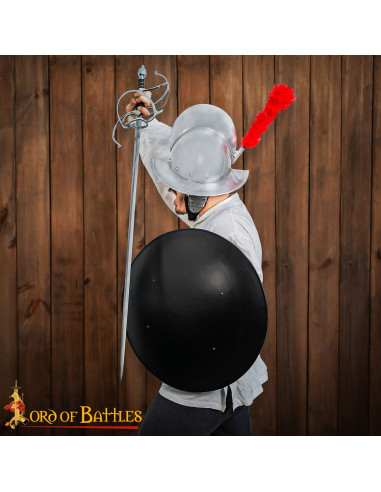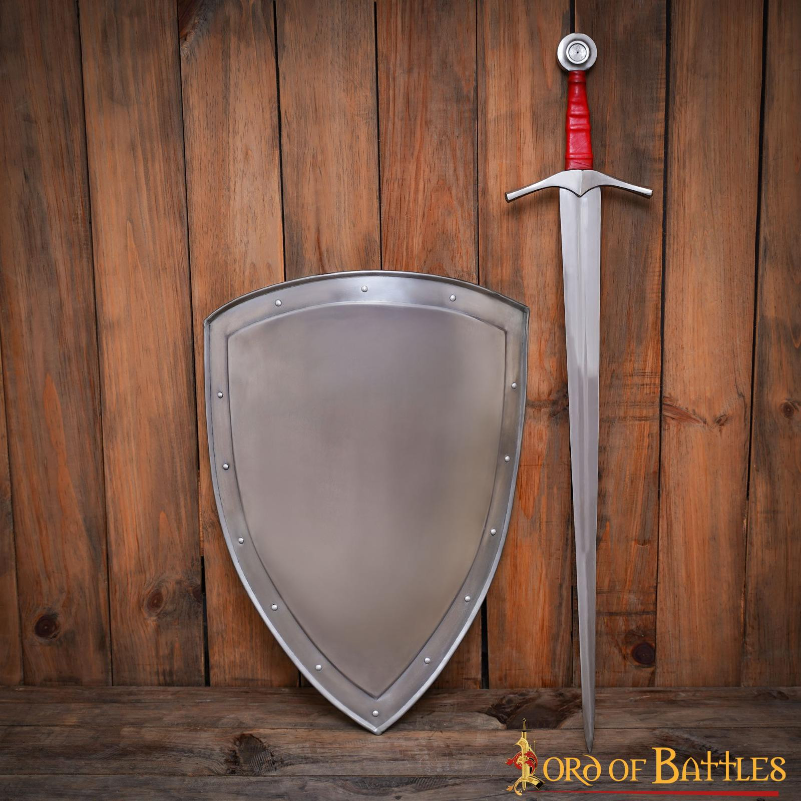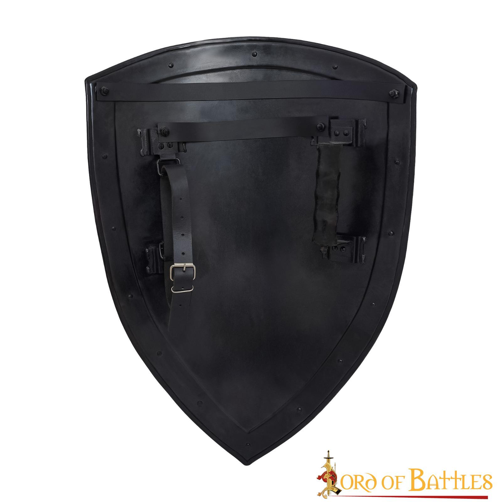 - Qualità e durata: questo scudo è stato forgiato a mano con precisione, garantendone qualità e durata. Realizzato in resistente acciaio dolce calibro 18, è un compagno affidabile per le tue avventure medievali e rinascimentali.