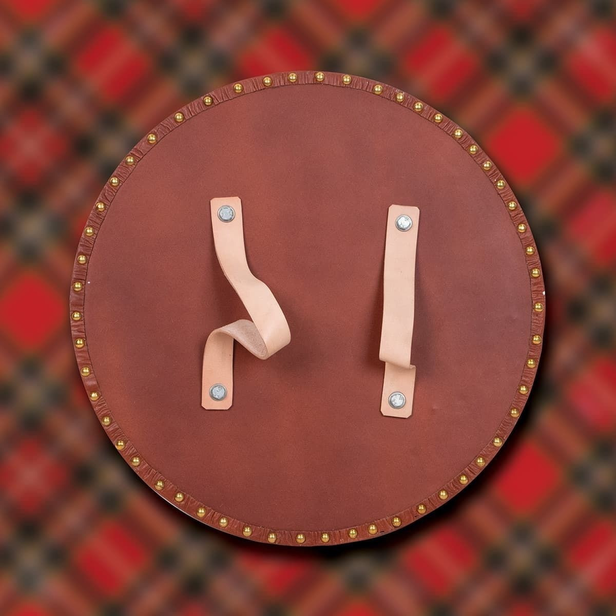 Abbraccia lo spirito guerriero delle Highlands scozzesi con il nostro scudo scozzese Targe del XIII-XIV secolo! Questo scudo, dal diametro di 51 cm, incarna la resistenza e l'orgoglio dei guerrieri scozzesi nel corso della storia.
