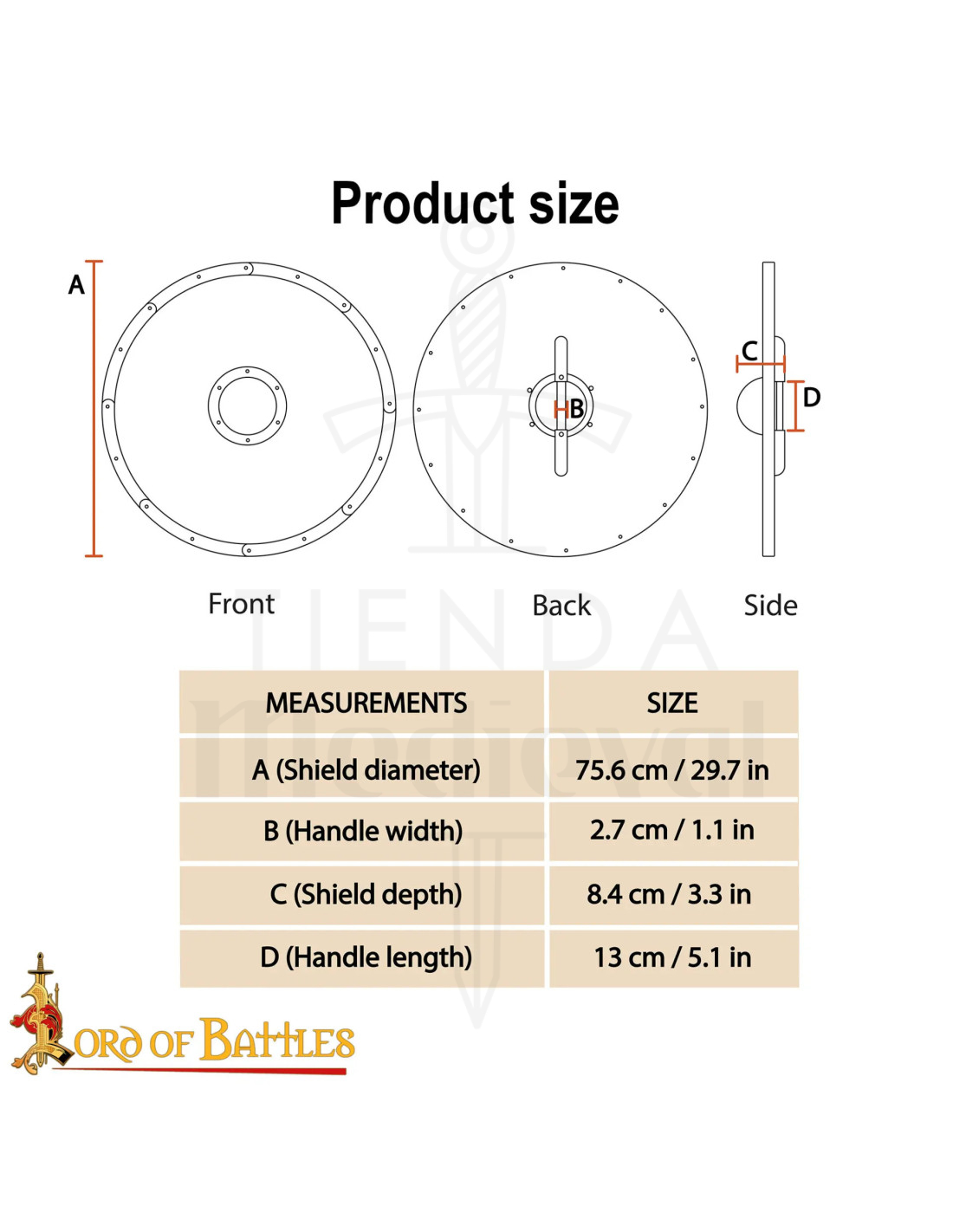 Ogni unità è realizzata a mano, quindi possono osservare piccole variazioni nella vernice e nelle venature del legno, il che rende ogni scudo un pezzo unico. Ideale per collezioni, costumi d'epoca e rappresentazioni con esigenze estetiche e funzionali.