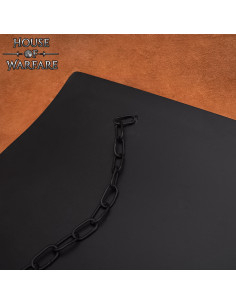 Scudo medievale in acciaio liscio con catena, colore nero