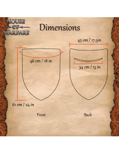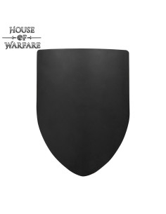Immagina uno scudo che combini presenza visiva e reale capacità d'uso in combattimento ed esposizione? Questo design cattura questa fusione: una parte anteriore liscia di colore nero che funge da tela pronta per il tuo simbolo e una silhouette classica che protegge il torso con stile storico.