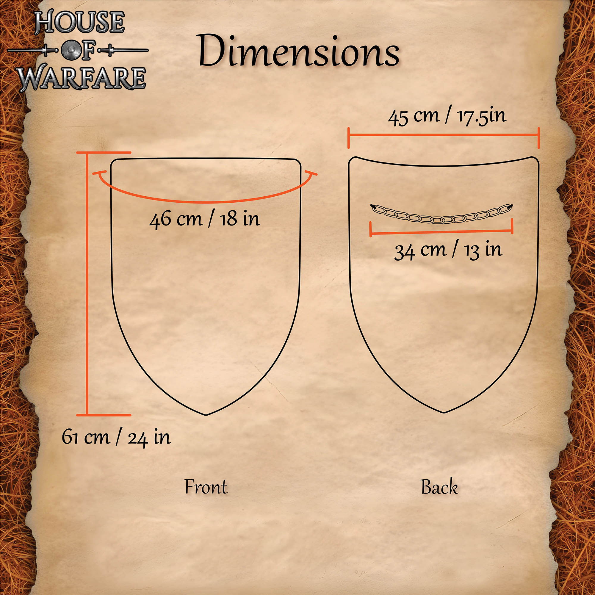 La forma tradizionale, arrotondata nella parte inferiore e dritta in quella superiore, non solo richiama i modelli utilizzati nell'Alto Medioevo, ma è pensata per coprire il torso in modo efficace, aiutando a deviare gli impatti durante gli allenamenti e le rappresentazioni. Il risultato è un equilibrio tra autenticità visiva e funzionalità pratica.