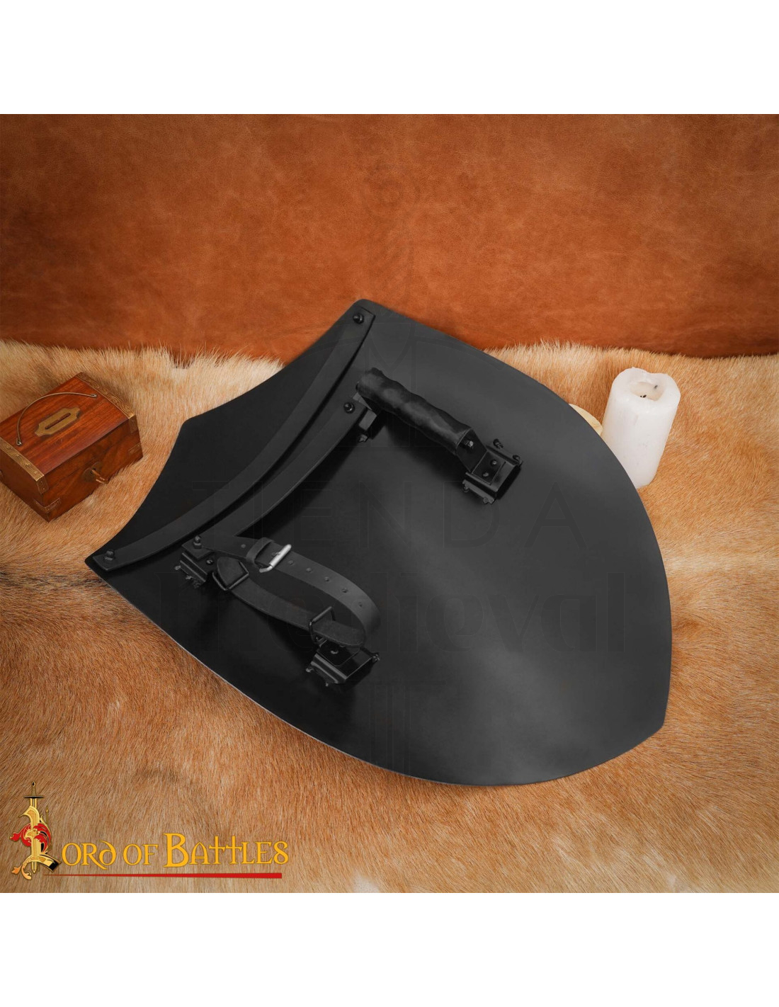 Immagina la presenza di un cavaliere nella tua sala o sulla linea di combattimento storica, uno scudo che cattura lo sguardo e suggerisce storie prima ancora di parlare.