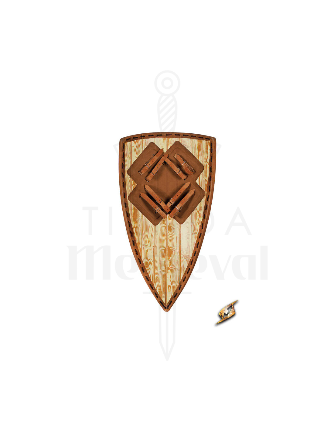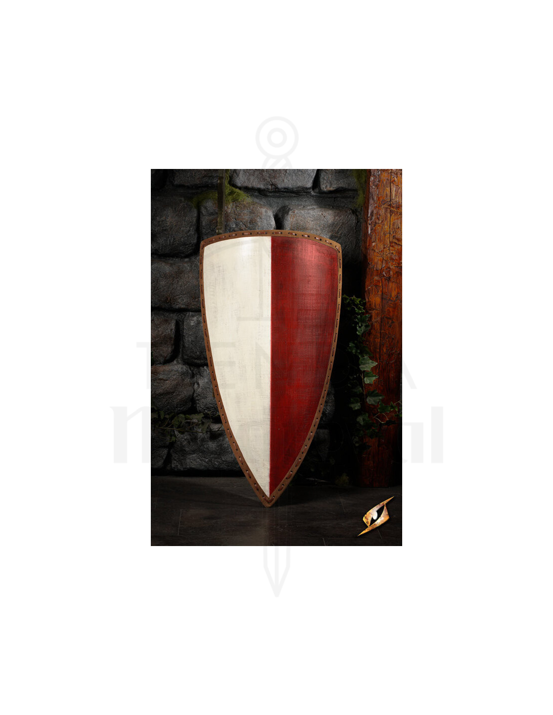 Dispone di ampio spazio per esporre stemmi o dipingere il tuo scudo araldico, personalizzando ulteriormente il tuo equipaggiamento. Ideale per far parte di un reparto, una squadra di cavalieri o una milizia nei tuoi eventi e giochi di ruolo.