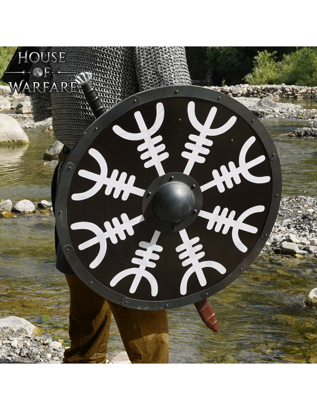 Perfetto per chi vuole comprare Scudo vichingo rotondo in legno modello Aegishjalmur come pezzo da collezione, per LARP, ambientazioni tematiche,utilità o decorazione con carattere, senza rinunciare a una costruzione durevole e a una finitura che si distingue da lontano.