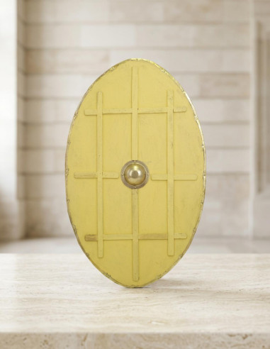 Lo scudo vichingo in lattice bicolore Ready for Battle si distingue anche per la sua curata finitura. Dipinto a mano in nero e rosso, imita un disegno araldico tradizionale, conferendogli un tocco di autenticità ed eleganza. Senza dubbio sarai al centro dell'attenzione nei tuoi giochi LARP.