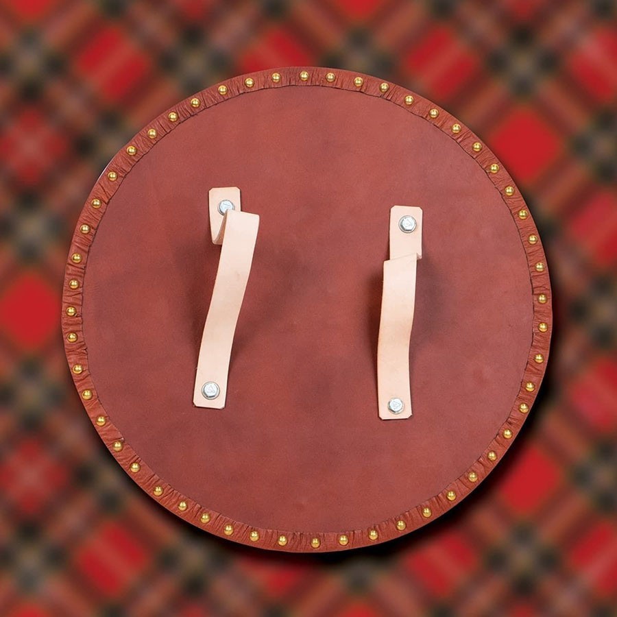 Il Targe Scottish Battle Shield presenta anche due cinturini in pelle sul retro, che consentono una vestibilità sicura e confortevole durante l'uso.