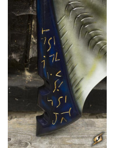 Il Dark Elf Blue/White Wing Shield in Latex di Epic Armoury è l'accessorio perfetto per coloro che vogliono sembrare veri guerrieri malvagi e oscuri dell'universo degli Elfi Oscuri. Misurando 85x55 cm, questo scudo è meticolosamente progettato e dipinto a mano per assomigliare a un'ala di rettile blu scuro con intagli di rune dorate, conferendogli un aspetto davvero impressionante.