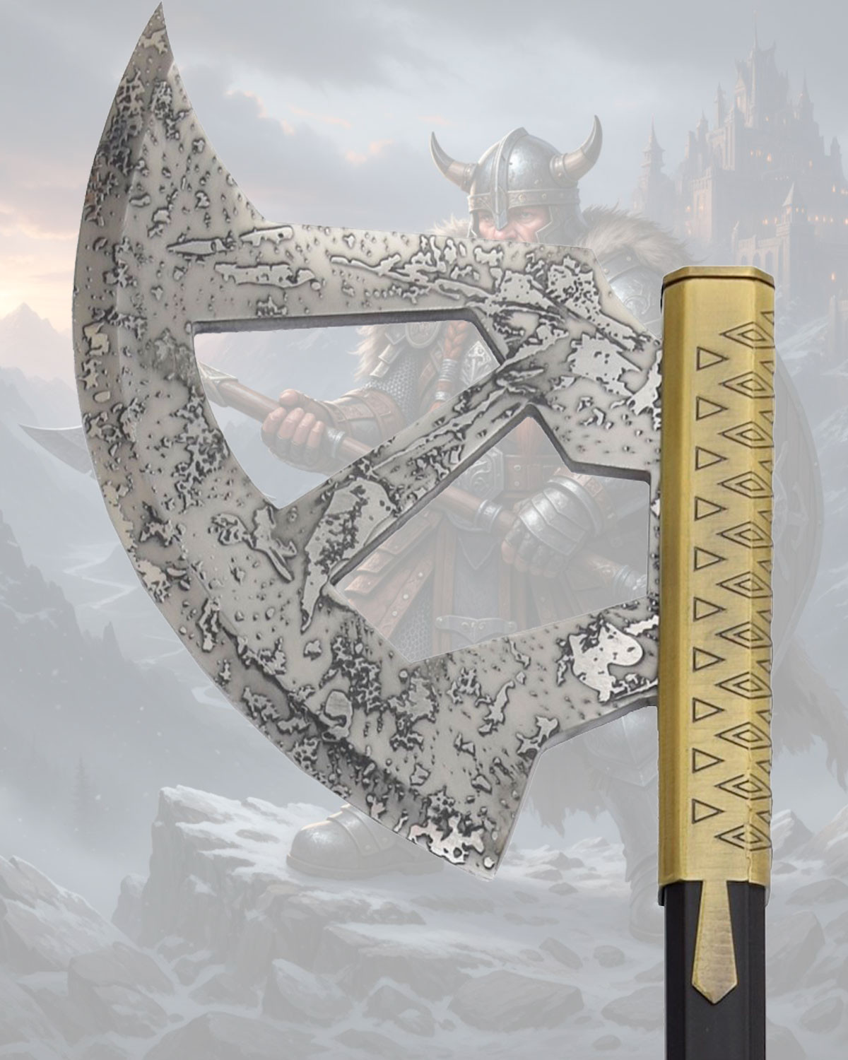 Pensata per collezionisti e appassionati che cercano pezzi di presenza, questa ascia decorativa offre la combinazione perfetta tra estetica cinematografica e finitura artigianale, ideale per risaltare in salotti, studi o vetrine di esposizione.