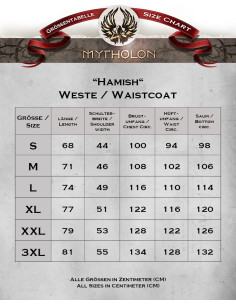 Tuffati nell'affascinante mondo di Steampunk con il nostro gilet rosso modello Hamish! Il gilet Hamish è un capo versatile che può essere utilizzato in una varietà di abiti. Che tu ti consideri un marinaio, un avventuriero, un intrepido viaggiatore, un mercante o persino un cattivo, questo gilet ti darà un look elegante e accattivante.