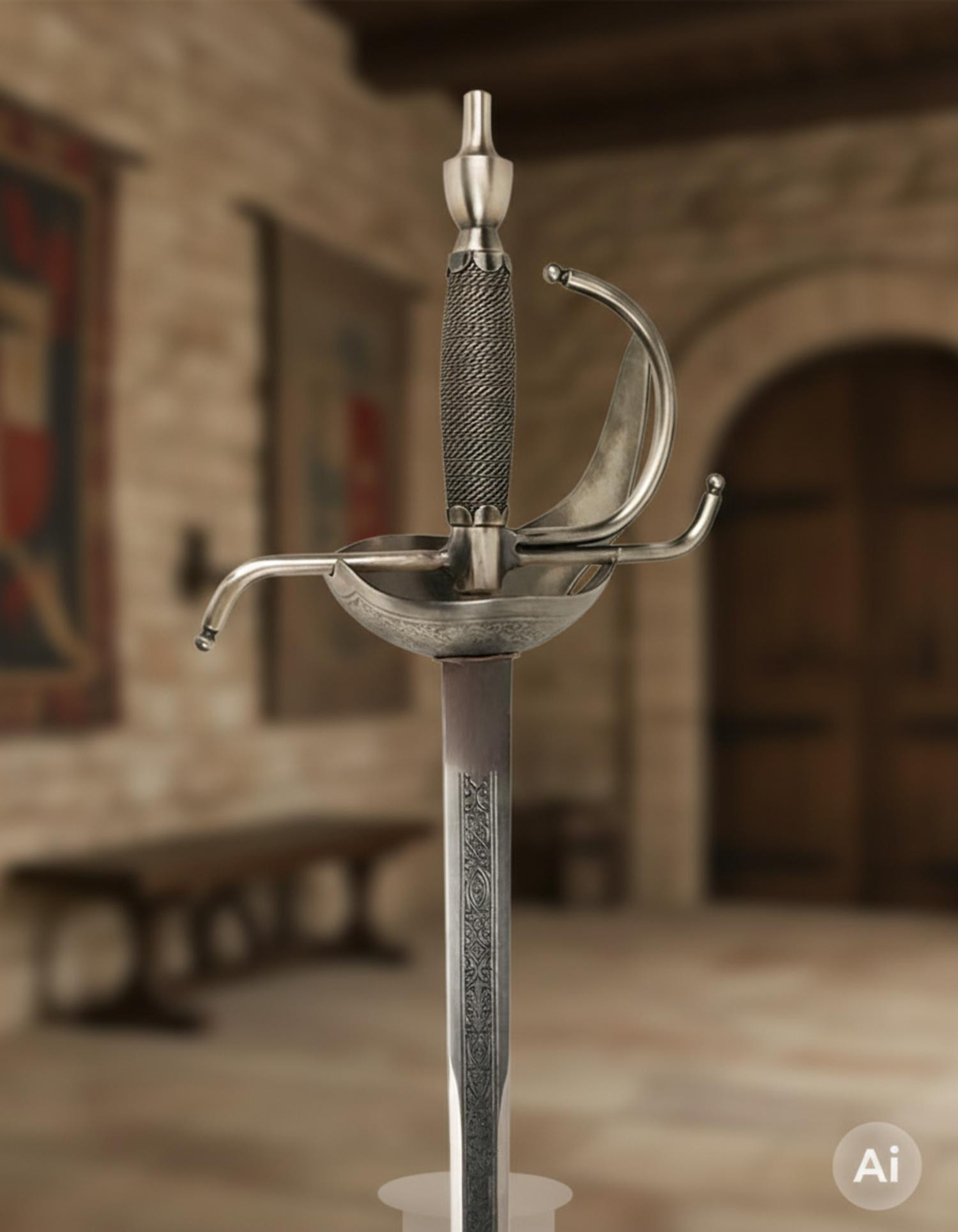 Questa spada ti invita a proiettare un'immagine di fiducia, autorità e ricchezza culturale. La crociera in argento invecchiato con incisioni rafforza questa presenza di status, mentre la sua produzione a Toledo, cuore della tradizione armamentistica spagnola, garantisce che il pezzo sia non solo elegante, ma anche durevole. Le opzioni di dimensione — 77 e 107 cm — permettono di adattarla al tuo stile, sia per esporla che per sentirti pronto in ogni momento. La Spada Re Carlo III è lo strumento definitivo per consolidare il tuo leadership e rispetto in ogni scenario.