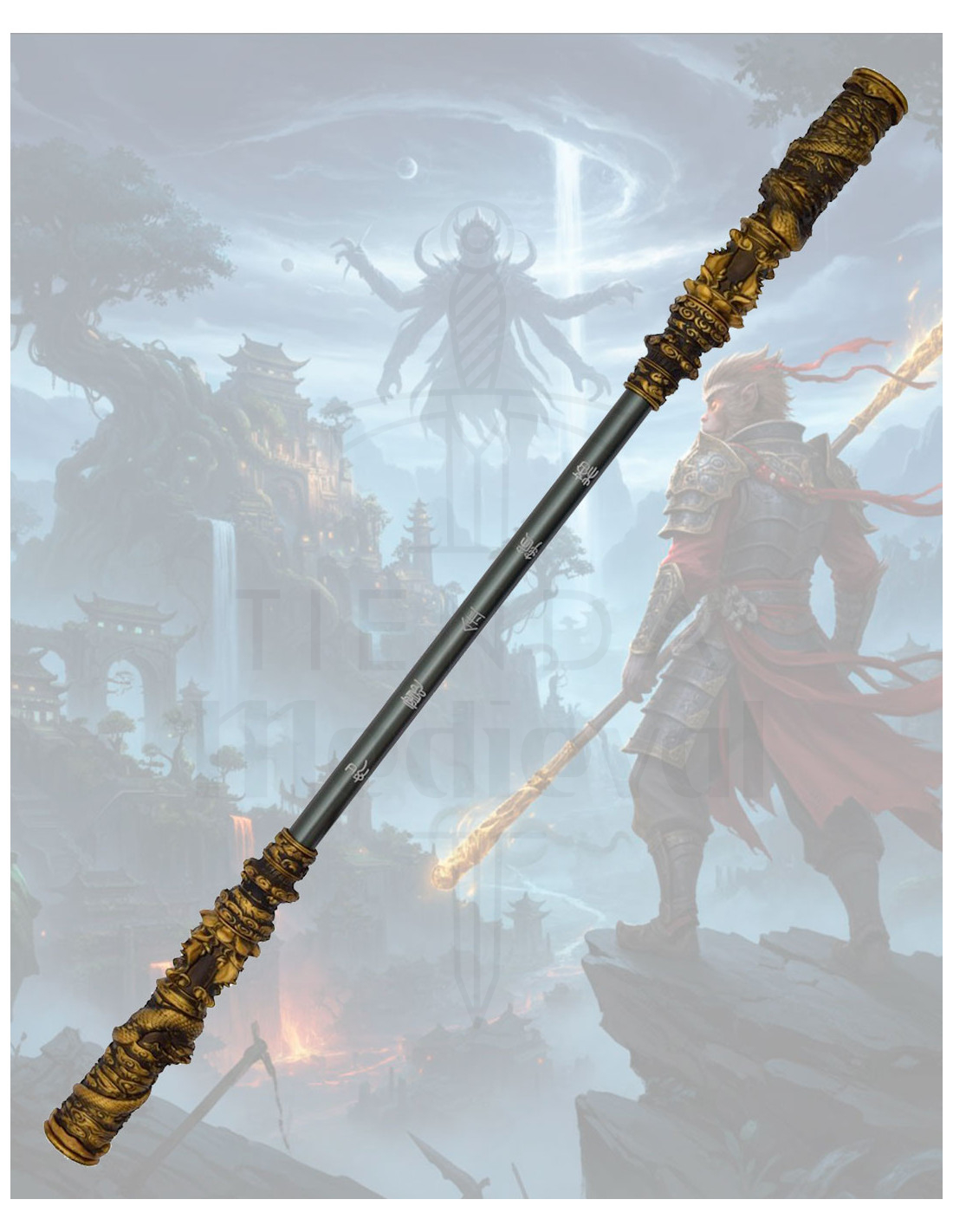 Collegato alla figura di Sun Wukong e alla reinterpretazione in Black Myth: Wukong, questa replica evoca l'iconica arma del mitico re scimmia, un simbolo molto riconosciuto nella cultura classica e nella nuova narrativa videoludica che ha recuperato questa iconografia con grande forza.
