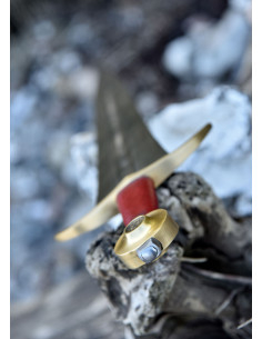 - Qualità e Artigianalità: Il pomello rivestito in lamina d'argento dorata e il manico in legno rivestito in pelle rossa dimostrano la qualità dei materiali e la cura nella lavorazione. La durezza Rockwell di 48-52 HRC garantisce la resistenza della lama.