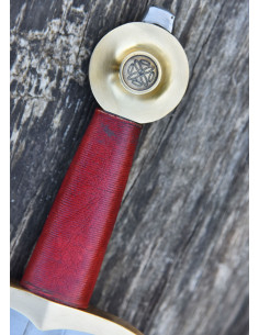Immergiti nella storia e nell'eleganza con la Spada di Filippo IV con fodero, un capolavoro che cattura l'essenza della nobiltà e del coraggio del XIV secolo. Rendi questa spada il centro della tua collezione o il complemento perfetto per la tua prossima avventura nel mondo della rievocazione storica.