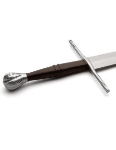 La Spada Erbach, della Collezione Signature Serie di Windlass, è un'autentica opera d'arte ispirata all'Alto Medioevo e al Rinascimento. Questo magnifico redesign prende come riferimento la spada 'bastarda' tipo XVIII A, famosa per la sua versatilità in combattimento, permettendo sia colpi devastanti che stoccate precise. Con una lama in acciaio ad alto carbonio, presenta un profilo conico distale che migliora la sua agilità e rapidità, rendendola ideale per l'uso con una o due mani.