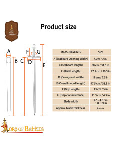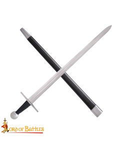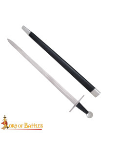 Ogni spada nasce dal lavoro esperto dell'artigiano, con una lama in acciaio trattato per resistere all'uso controllato, senza la necessità di un filo affilato, permettendoti di esercitarti con sicurezza. Il design rettilineo e la finitura metallica satinata conferiscono una presenza visiva e facilità di manutenzione, mentre la guardia rettangolare e il pomo in metallo martellato offrono fermezza e resistenza in ogni manovra. L'impugnatura avvolta in cuoio assicura una presa comoda e stabile, ideale per sessioni prolungate senza che la spada diventi scomoda.