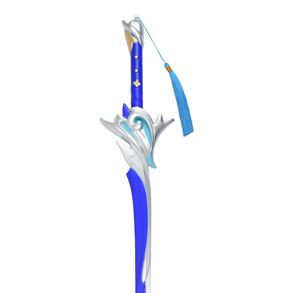 Realizzata in schiuma ad alta densità, questa spada offre la sicurezza e la leggerezza necessarie per cosplayer e collezionisti che cercano una replica fedele e pratica. La sua finitura in tonalità blu profondo e argentato, insieme alle sue decorazioni dorate, cattura perfettamente l'aura e le abilità associate al personaggio di Ayato, noto per la sua eleganza e le sue abilità di combattimento uniche nel gioco.