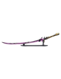 La lama in acciaio di 69 cm è robusta ed è finemente lavorata, mentre il manico metallico e la guardia aggiungono un tocco di sofisticatezza e resistenza. Con una lunghezza totale di 110 cm e un peso di 1965 g, questa spada è perfetta da esporre, mostrando con orgoglio la tua passione per Genshin Impact e per Raiden Shogun, il potente elettro-archon.