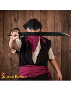 Questa non è un semplice giocattolo, è un autentico passaporto all'Età d'Oro della Pirateria. Il cutlass, con la sua caratteristica lama curva e il suo protettore a forma di 'D', era l'arma preferita nel fragore degli abbordaggi, un combattimento a distanza ravvicinata dove la velocità e la presenza drammatica erano tutto. Ora, quella leggenda si materializza in un pezzo di legno di faggio che cattura per la sua eleganza e robustezza. La finitura in nero opaco conferisce un'aria audace e misteriosa, fedele a quella che avrebbero portato i temerari corsari e bucanieri dei secoli XVII e XVIII.
