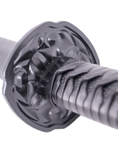 La guaina nera e l'impugnatura avvolta in ecopelle donano equilibrio tra estetica e autenticità, rafforzando la sua presenza e offrendo un'esperienza più coinvolgente. Con una lunghezza totale di 103,5 cm, questa katana si distingue per le sue proporzioni e il design, diventando il centro dell'attenzione in qualsiasi collezione o spazio personale.