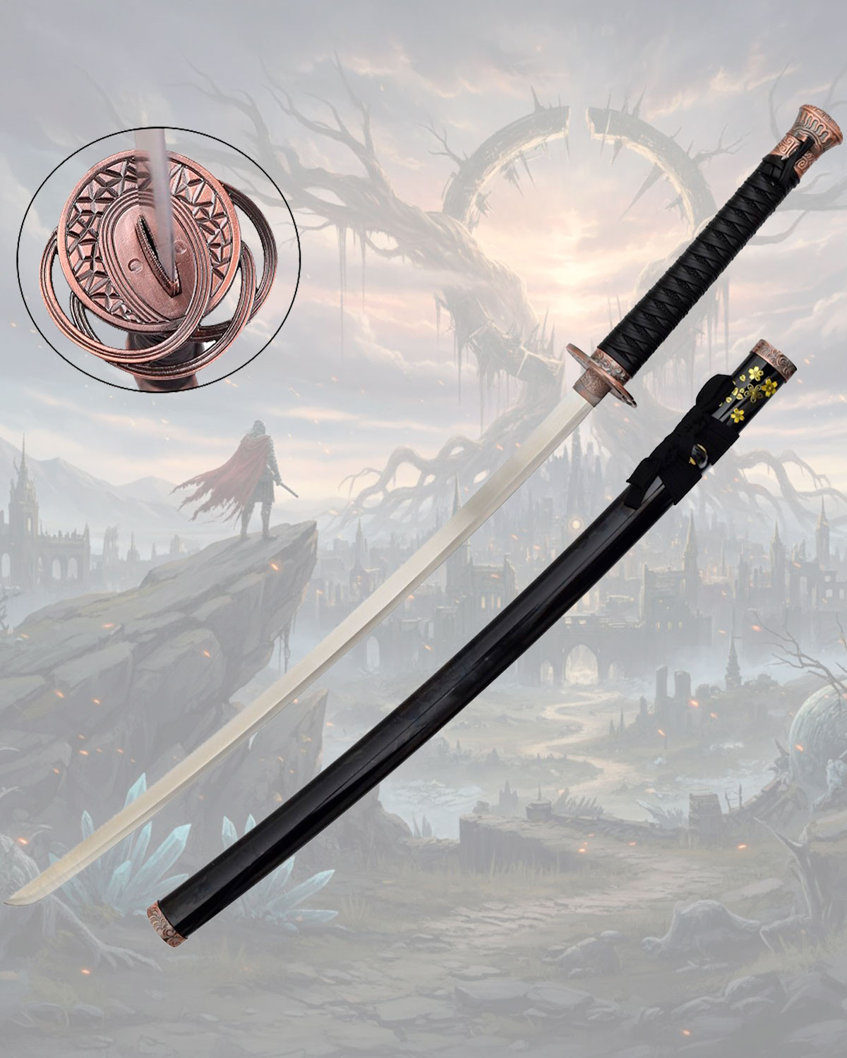 Disponibile per l'acquisto Katana ornamentale Moonveil di Elden Ring, Replica non ufficiale, così come per chi cerca di comprare Katana Velo Lunare o Moonveil di Elden Ring replica non ufficiale, questo pezzo combina estetica, dettaglio e presenza per chi desidera una replica memorabile nella propria collezione.