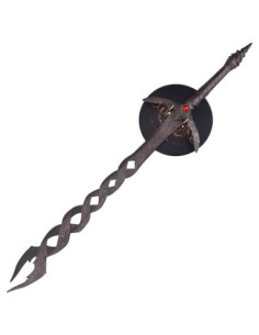 Questo veicolo visivo, ispirato a un'epica saga, porta la tua estetica a un nuovo livello, permettendoti di esprimere forza e sofisticatezza in ogni ambiente. La figura completa, con la sua lama d'acciaio scuro e le guardie a forma di ali, parla di un dominio inarrestabile. L'inclusione del supporto in legno non solo esalta il suo carattere decorativo, ma ti aiuta anche a mantenere quella autorità nel tuo spazio, facendo sì che i tuoi clienti o ospiti riconoscano in te un leader che non teme i dettagli che fanno la differenza. La Matadioses Elden Ring diventa il tuo simbolo, il tuo promemoria costante che la vera autorità nasce nell'atteggiamento e nelle decisioni che prendi.